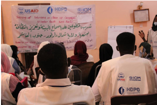 HDPO held a training workshop for volunteers on environmental sanitation and community hygiene promotion in South Al Fashir as part of the four-month integrated emergency project covering (water, sanitation and hygiene, protection and health) funded by (USAID) and (IOM).